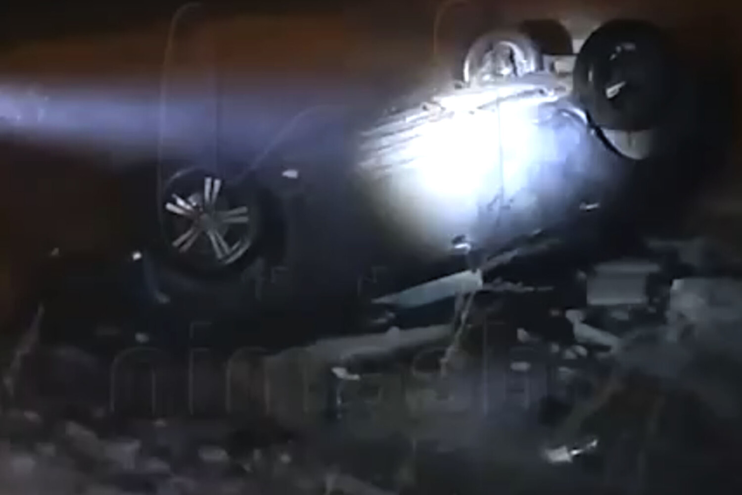 На кадрах видно, что в момент аварии транспорт перевернулся и упал на крышу. По словам очевидцев, во время кульбита водитель находился в состоянии алкогольного опьянения. После произошедшего на место приехала супруга автомобилиста.