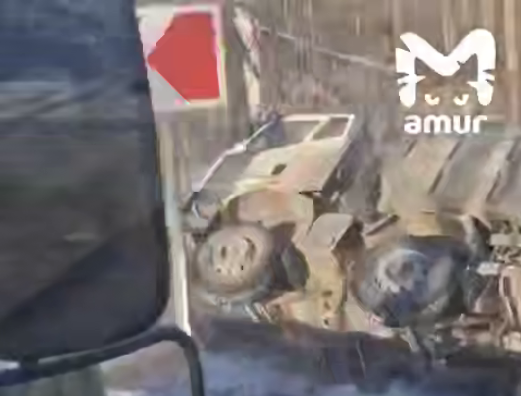 «Заснул»: на видео попало, как самосвал с хабаровчанином опрокинулся в ДТП
