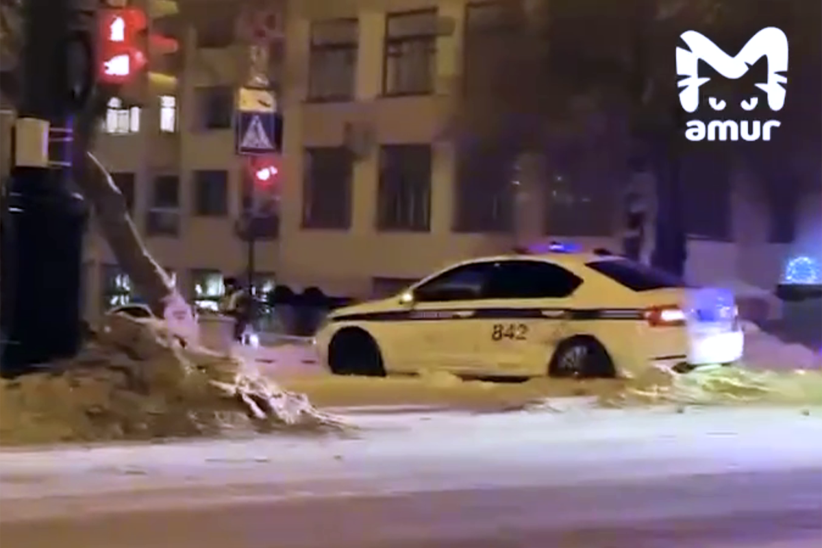 Mash: экипажи ДПС столкнулись во время погони в центре Хабаровска