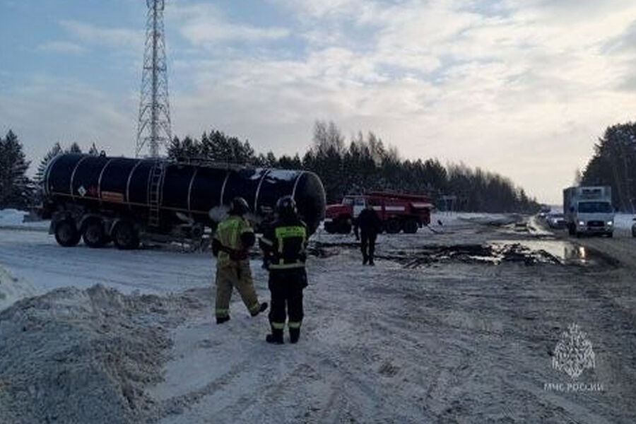 На кадрах видно, что на место ДТП прибыли спасательные службы. В МЧС заявили, что в результате аварии пострадавших нет. Специалисты отметили, что угрозы попадания нефти в близлежащие водные объекты нет. В настоящее время на месте работают оперативные службы города: к ликвидации последствий привлекли 35 человек и 15 единиц спецтехники.