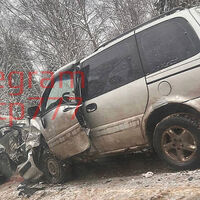 На кадрах с места происшествия видно, что минивэн серебристого цвета столкнулся с легковым автомобилем. Удар пришелся на переднюю часть минивэна и левый бок легкового автомобиля. Из-за этого кузов легковой машины оказался согнут пополам.