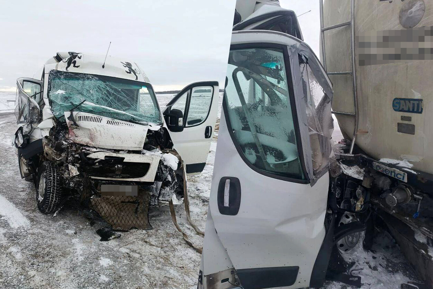 По данным ведомства, авария произошла днем 10 января в Ужурском муниципальном округе на автодороге Ачинск — Ужур — Троицкое. Водитель микроавтобуса марки 2227SK, 56-летний мужчина, двигался в сторону Ачинска и врезался в грузовой автомобиль Scania с полуприцепом-цистерной, который ехал впереди в том же направлении.