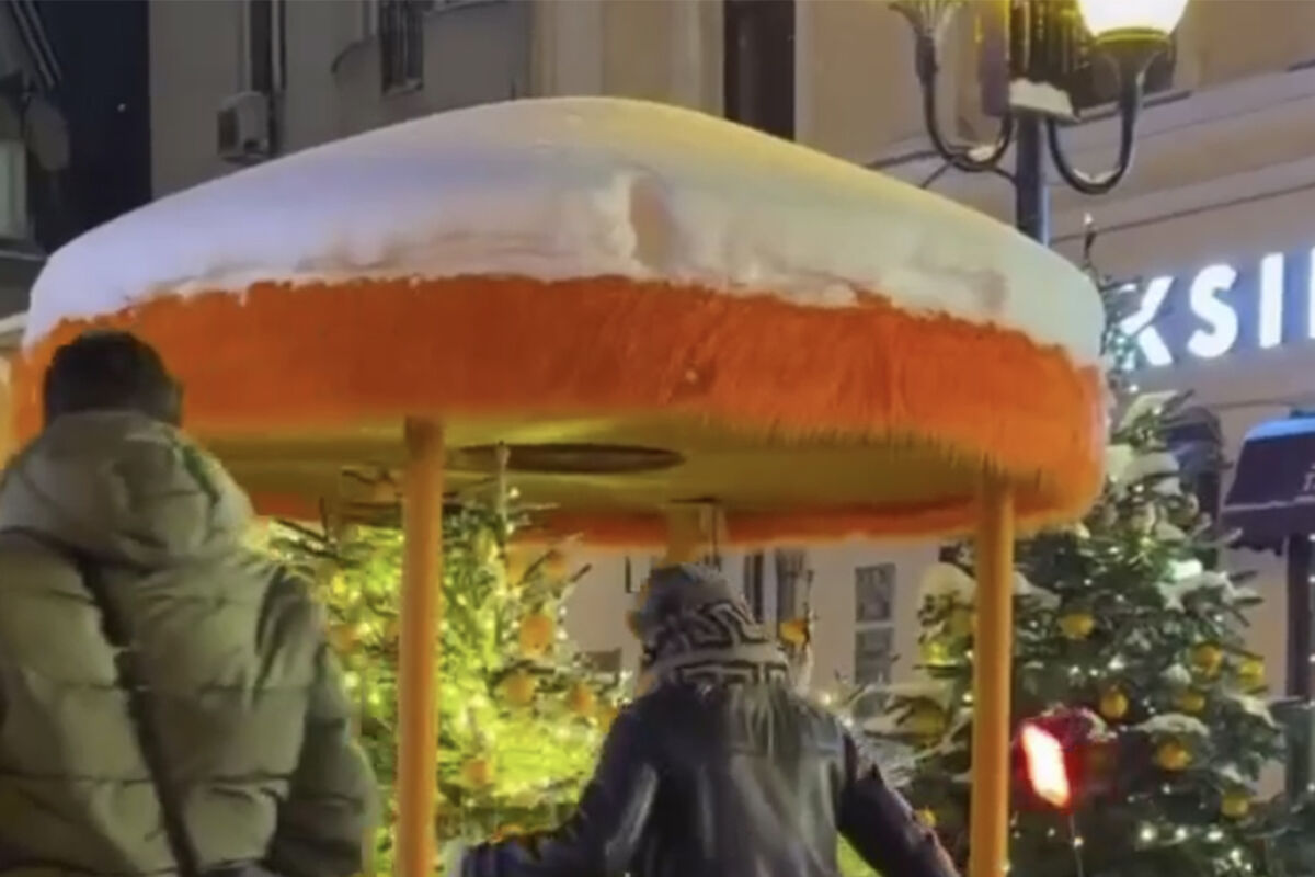 Судя по кадрам, мужчина сел на робота-доставщика, который стоял около новогодней инсталляции. Передние колеса робота стали подниматься, мужчина соскользнул с него и упал спиной на асфальт.