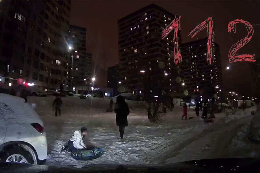 Дети спускаются на «ватрушках» прямо к проезжей части в Подмосковье. Видео опубликовал Telegram-канал 112.