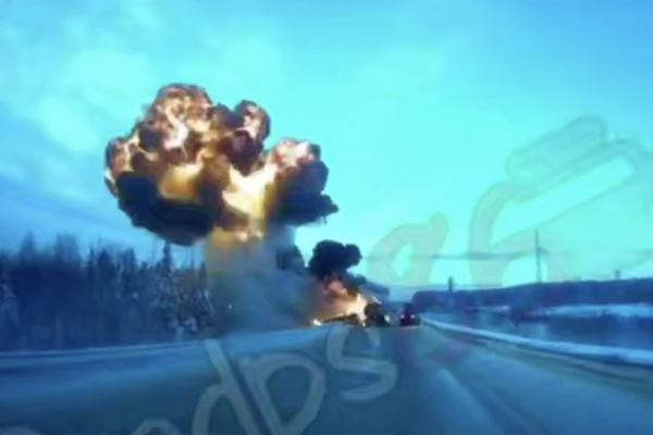 На трассе Тюмень — Ханты-Мансийск взорвалась фура, и это попало на видео