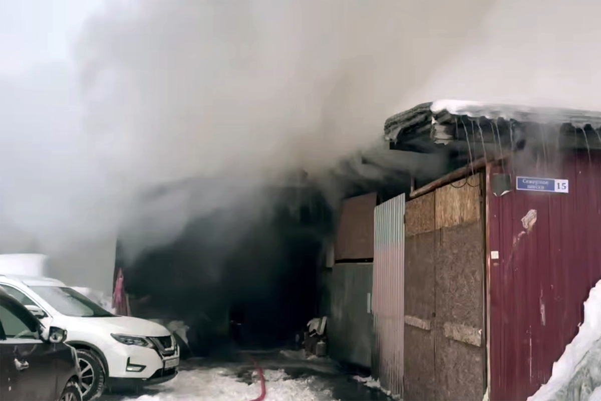 Ранее горящий мужчина выскочил из гаража и рухнул в сугроб в Москве.