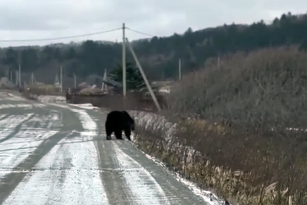 «На Кунашире заметили косолапого, который по непонятным причинам не уснул. Медведь не спеша шел по заснеженной дороге на 13 км. <…> курильчане наблюдают хищника уже не в первый раз. Ранее, 4 января, медвежьи следы заметили на берегу моря недалеко от мыса Столбчатого», — говорится в публикации.
