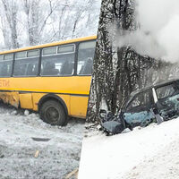 Инцидент произошел днем 15 января. На кадрах, размещенных в сети, видно, что школьный автобус находится в кювете, при этом с другой стороны дороги горит машина. На записи также заметно, что на проезжей части разбросаны автомобильные детали, а рядом с поврежденными машинами стоят люди.