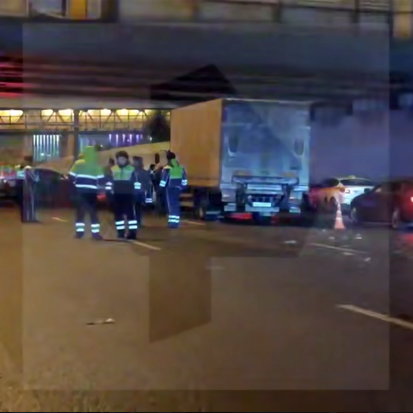 На Северо-Восточной хорде в Москве грузовик наехал на стоящий легковой автомобиль, сообщает в Telegram-канале столичный дептранс.