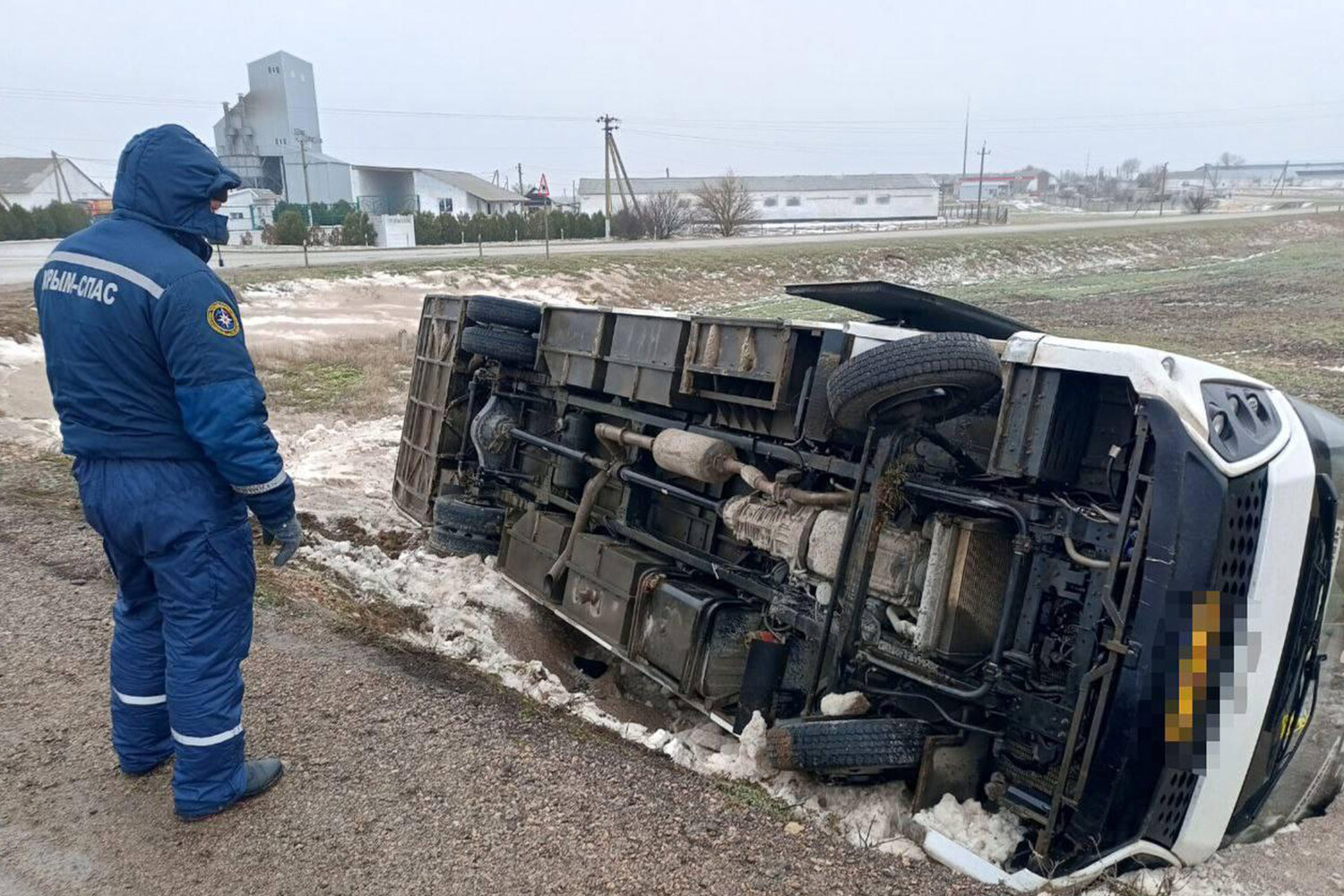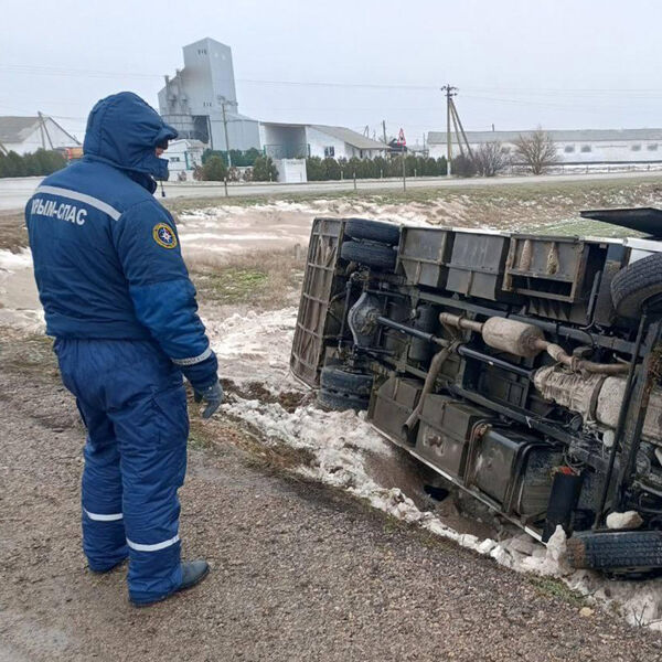 По предварительным данным, ДТП произошло утром 24 января на автодороге Евпатория — Черноморское в районе села Красная Поляна. 71-летний водитель автобуса СИМАЗ во время выполнения поворота не выбрал безопасную скорость, выехал на встречную полосу и допустил опрокидывание транспортного средства.