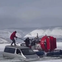 До этого автомобиль с людьми провалился под лед на Байкале. Машина двигалась по льду и в 900 метрах от берега, проезжая трещину, провалилась под воду. Водитель и одна пассажирка не выбрались, еще двое сумели спастись.