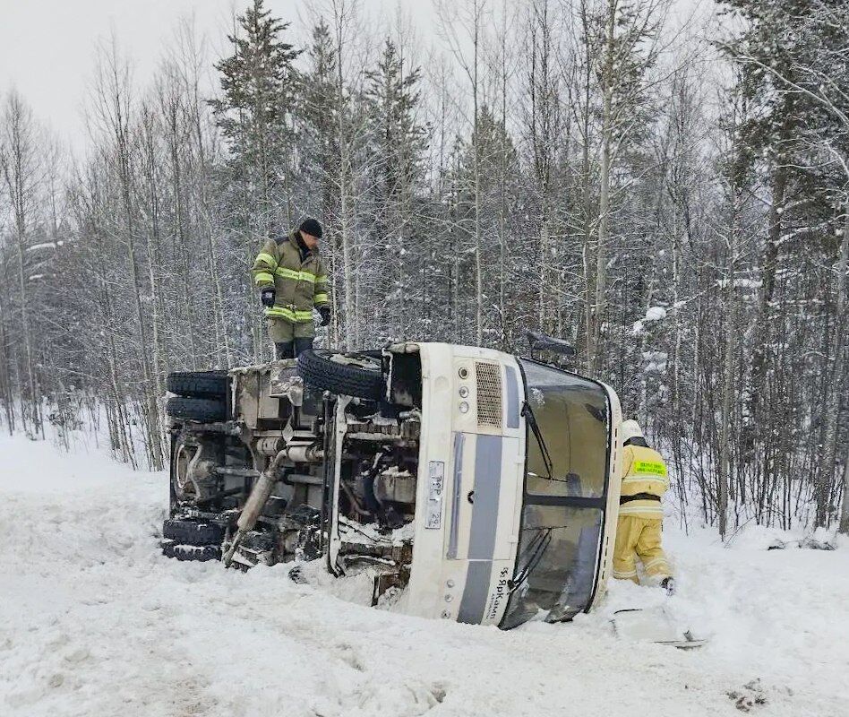 Пассажирский автобус съехал в кювет и опрокинулся у деревни Хорьково в Приморском округе Архангельской области. Об этом в Telegram-канале сообщило региональное Агентство государственной противопожарной службы и гражданской защиты.