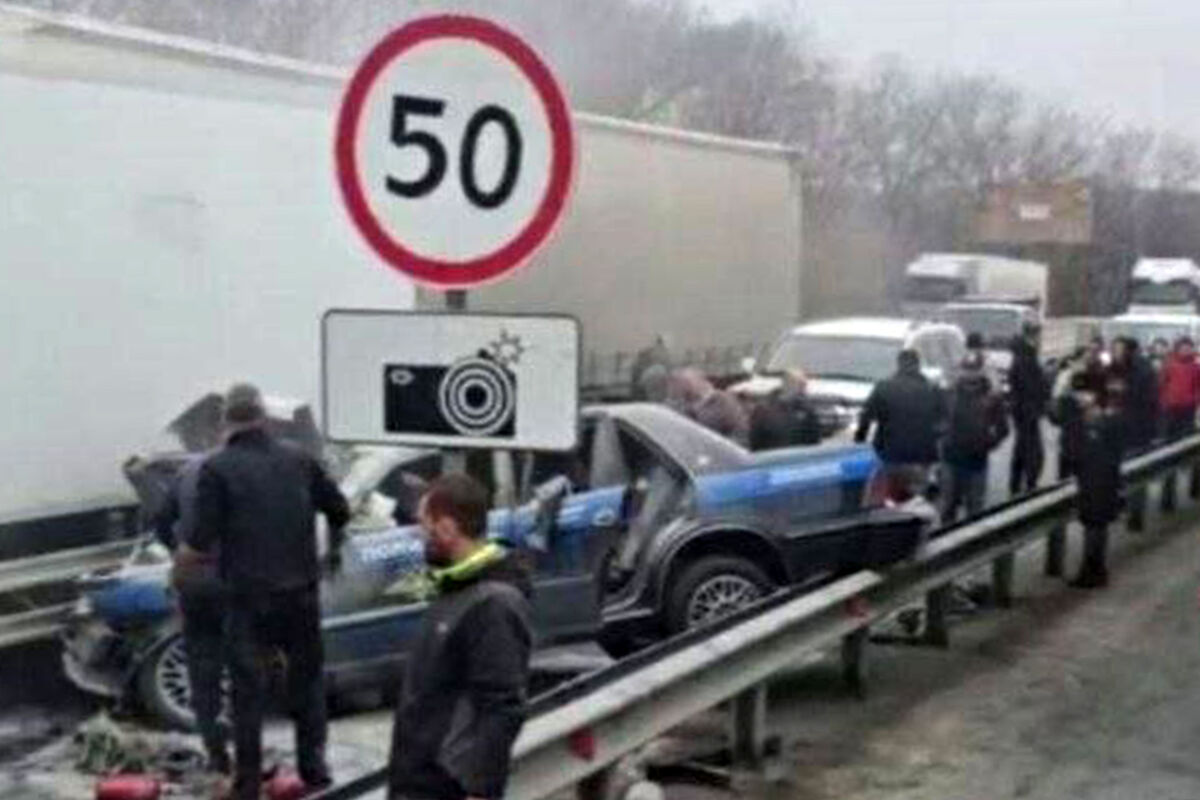 «Машина ДПС вспыхнула на дороге в Приморье. Она врезалась в грузовик при погоне. Патрульные мчали за байкером. В районе поворота на Тавричанку их авто влетело в многотонник, от сильнейшего удара легковушка загорелась», – говорится в публикации.