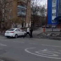 Очевидцы запечатлели инцидент на видео. На кадрах видно, как человек, который лежит на земле, встает и ударяет рукой отъезжающий автомобиль такси. Тогда водитель выходит из транспорта и толкает человека на землю: от удара мужчина падает.