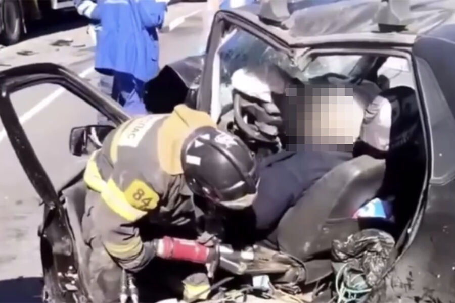 На размещенных в сети кадрах видно, как спасатель пытается освободитель человека, которого зажало на переднем сидении машины. На записи также заметно, что в результате аварии легковой автомобиль получил серьезные повреждения, а его детали разлетелись по проезжей части.