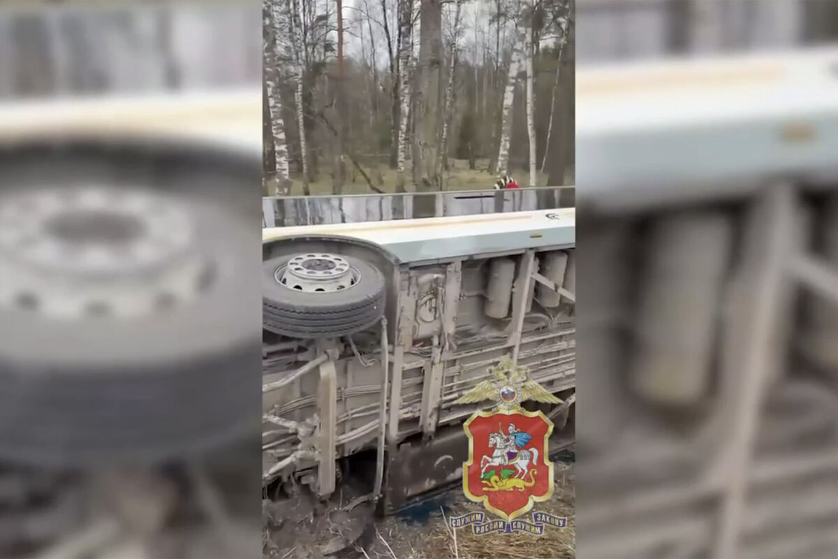 В Московской области общественный транспорт опрокинулся в аварии. Об этом сообщает Telegram-канал «Осторожно, Москва».