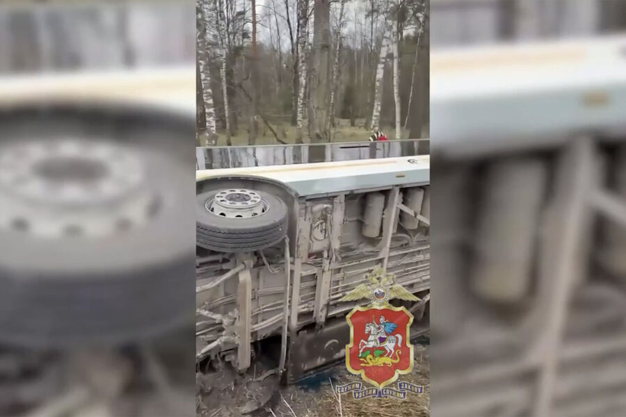 В Подмосковье на видео сняли автобус, который опрокинулся в жестком ДТП