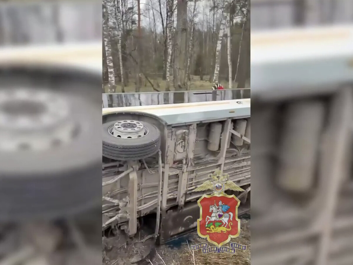 Автобус с россиянам опрокинулся в кювет и попал на видео