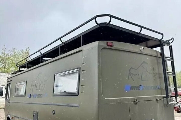 Машина покрыта матовой зеленой эмалью и больше похожа на автомобиль спецслужб, но внутри оборудована для путешествий: двуспальная кровать, кухонный гарнитур, обеденная зона. Стоимость проекта продавец предлагает обсудить лично.