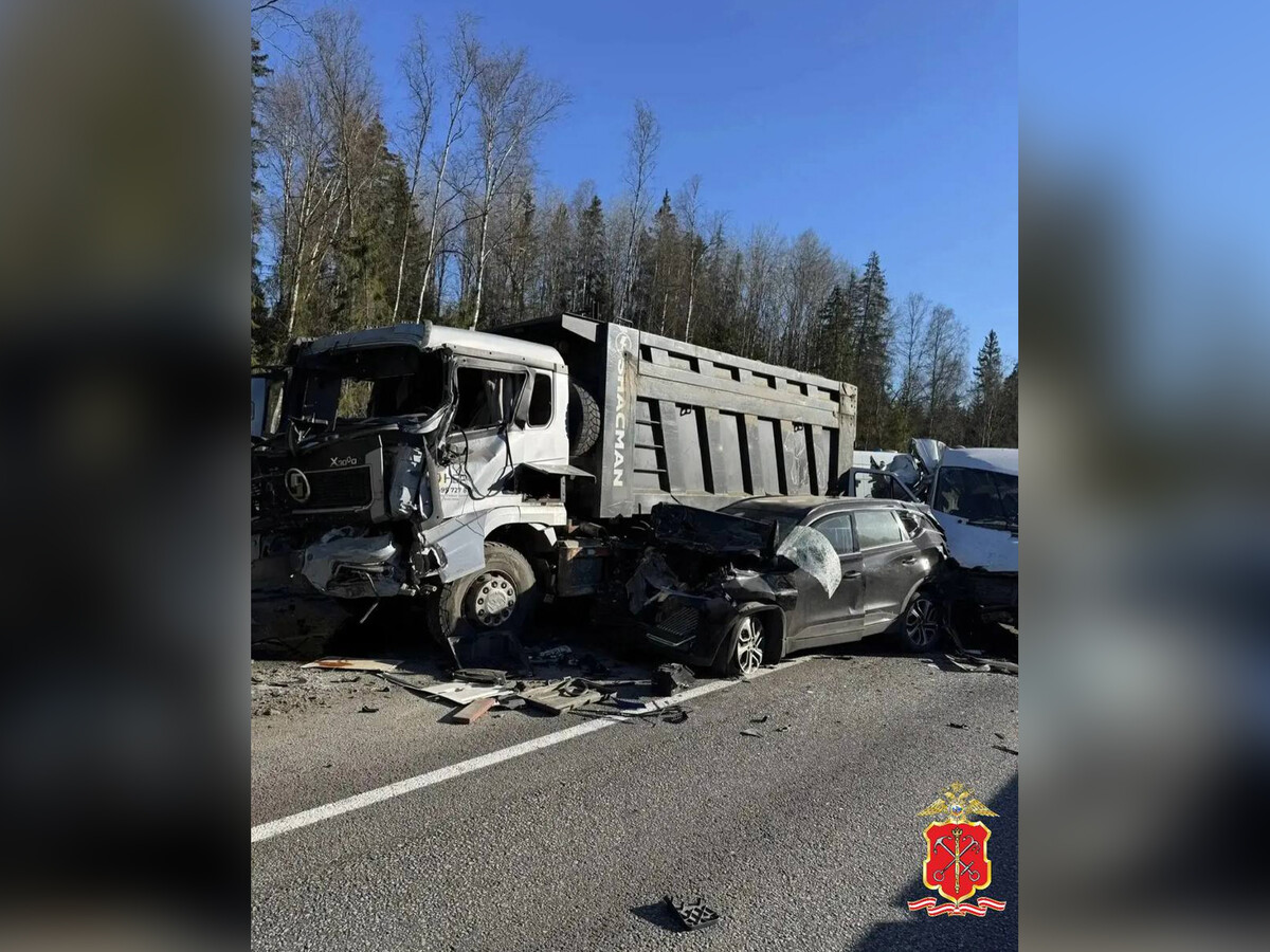 13 человек пострадали в массовом ДТП c фурами под Петербургом