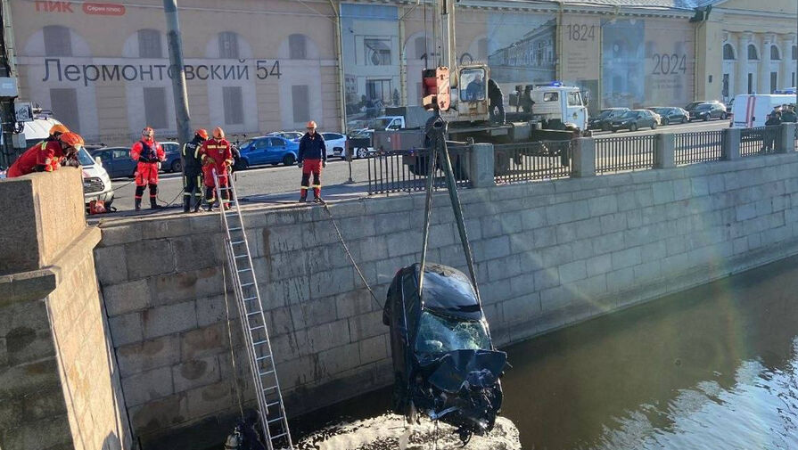 В Санкт-Петербурге автомобиль с людьми упал в Обводной канал. Кадры инцидента опубликовала региональная полиция.