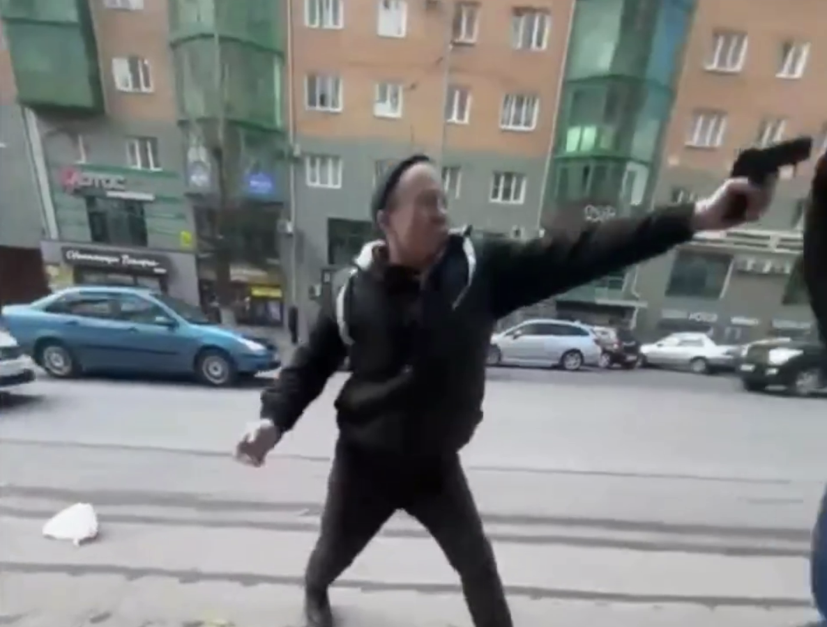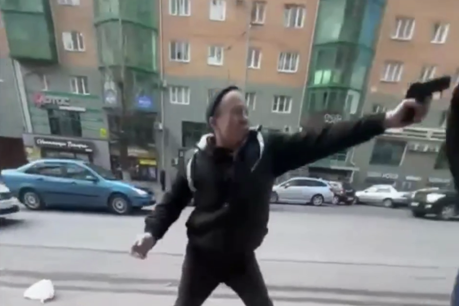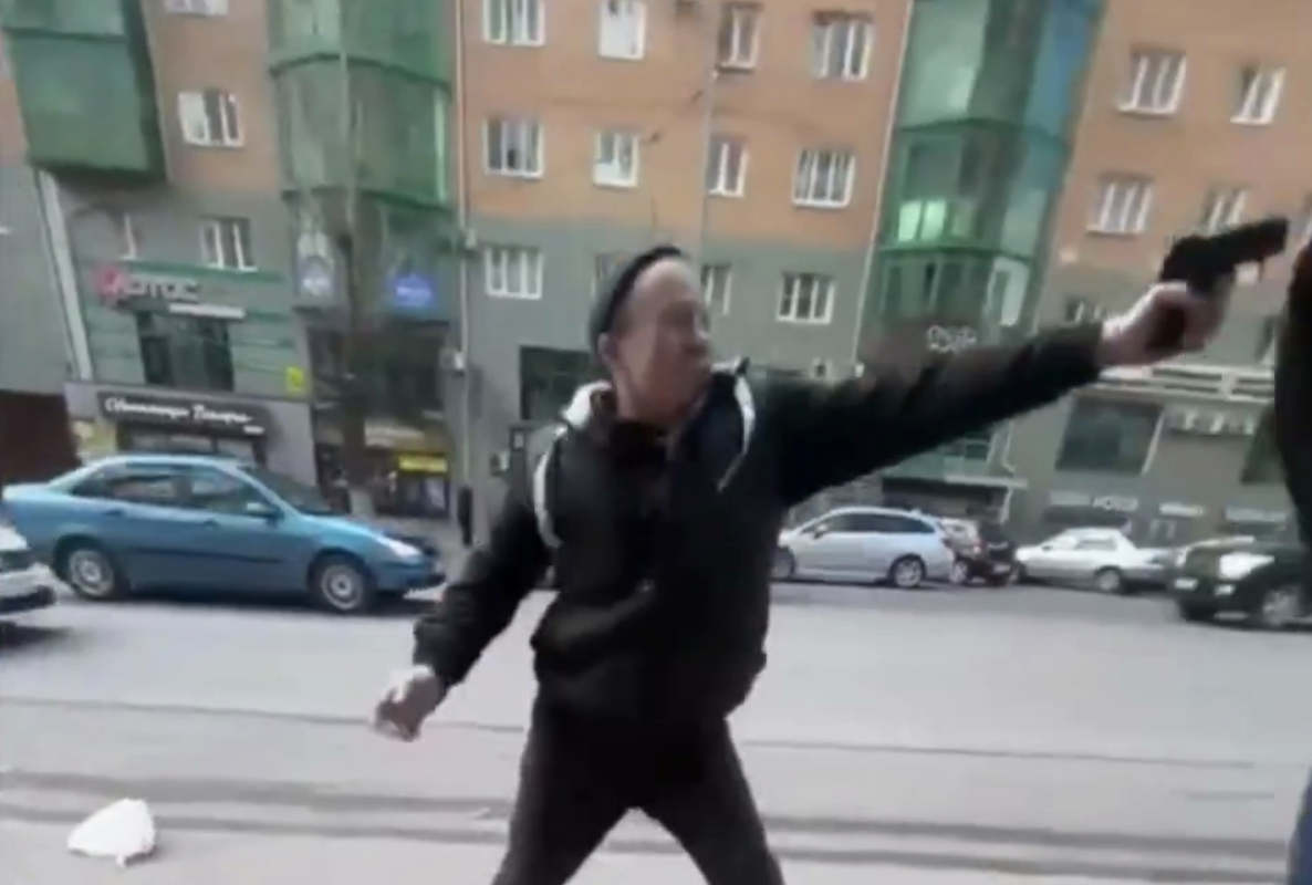 Пешеходы запечатлели инцидент на камеру. На кадрах видно, как люди дерутся на проезжей части, при этом в один момент один из мужчин перекидывает своего оппонента, которые делает кувырок в воздухе и падает на асфальт. Далее на записи заметно, как нарушитель достает пистолет и начинает целиться в мужчину.