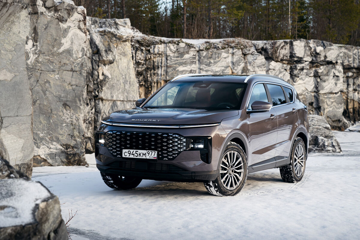 Soueast S07 появился на российском рынке в конце 2024 года, все автомобили адаптированы для зимы: есть обогрев сидений, руля, лобового стекла и форсунок. Даже в базе кроссовер получает два 12,3-дюймовых дисплея, кожаный салон, климат-контроль, аудиосистему Sony, беспроводную зарядку, панорамную крышу и 20-дюймовые колёсные диски.