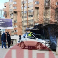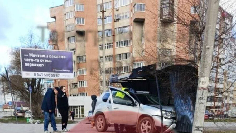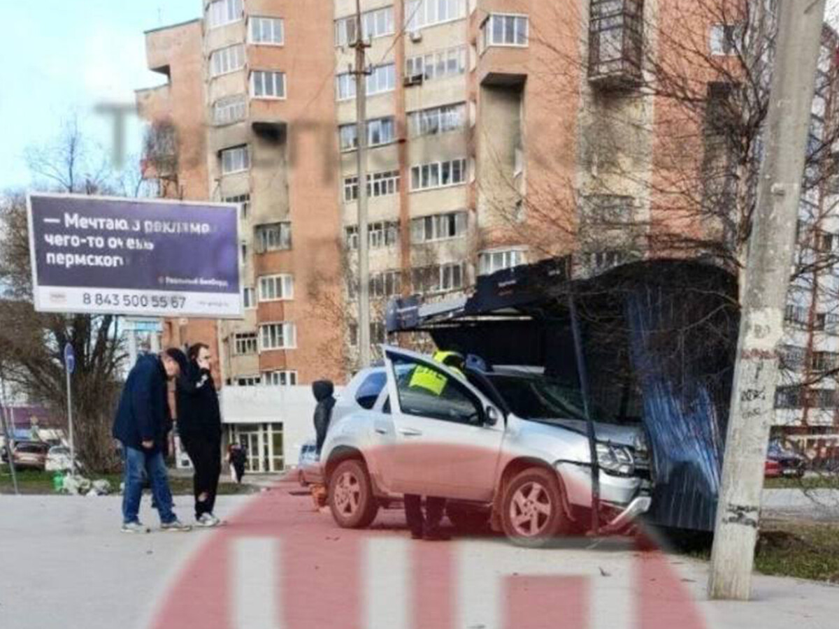 Машина на полной скорости протаранила автобусную остановку в Перми
