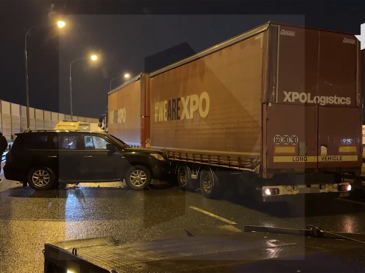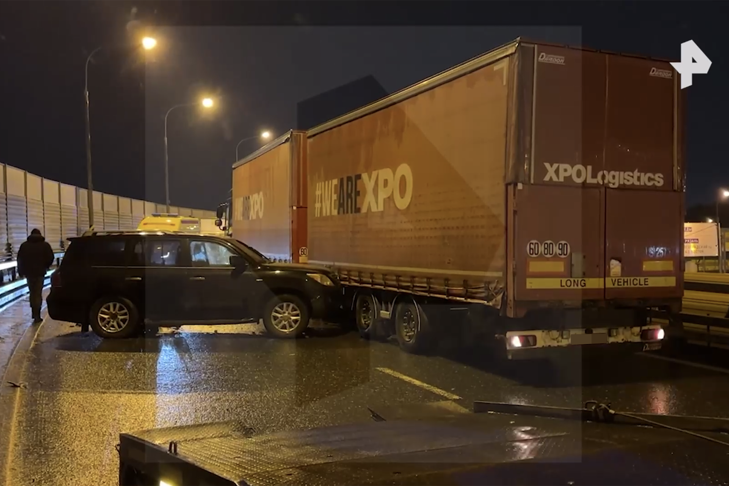 На МКАДе фура выехала против встречного потока и разворотила внедорожник