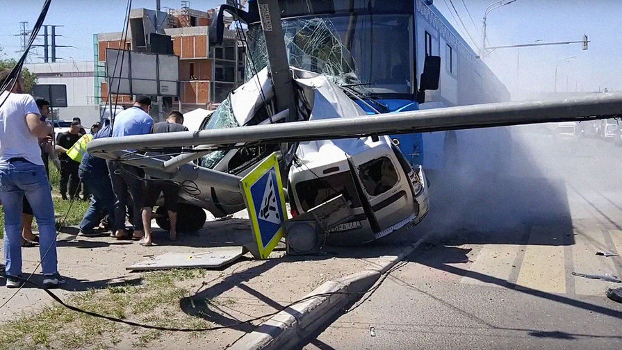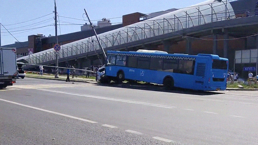 Как рассказали в «Мосгортрансе», автомобиль пытался повернуть направо из второго ряда, не уступив дорогу маршрутному транспортному средству. На видеозаписи с моментом аварии можно заметить, что перед перекрестком в кадре серебристый минивэн Lada Largus начинает притормаживать, перестраивается в правый ряд прямо перед автобусом, задевает его, после чего обе машины сносят столб и останавливаются.