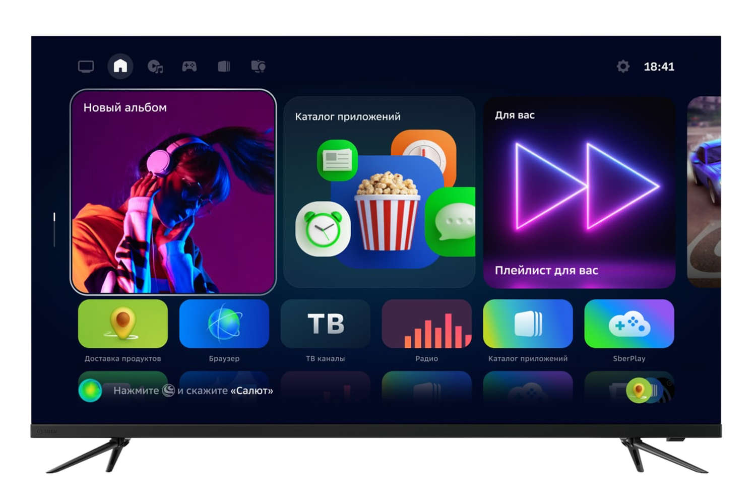 Также на телевизорах Sber можно заказывать продукты и еду через сервисы «Самокат» и Delivery Club. Ассистенты Салют помогут записаться в салон красоты или к врачу. После выбора услуги, даты и времени визита ассистент сам позвонит в организацию, а затем пришлет уведомление.