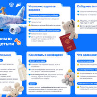Пятый шаг — перед полетом успокоить малыша, если он встревожен, пристегнуть его специальным ремнем (такие есть для детей до двух лет). Если закладывает уши, предложите малышу пустышку, а детям постарше — жевательные конфеты. В полете нужно развлекать малыша, чтобы он не заскучал: планшет, книга, игра в загадки. Шестой шаг — рассказать ребенку, что если он потерялся, нужно обратиться к сотруднику аэропорта, что нельзя разговаривать с чужими людьми и уходить с ними. Также нужно положить в карман ребенка памятку с контактной информацией на русском и английском языках.