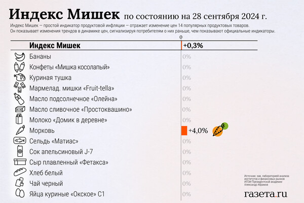 С 21 по 28 сентября 2024 года так называемый Индекс Мишек вырос на 0,3% против его повышения на 1,7% неделей ранее. Об этом