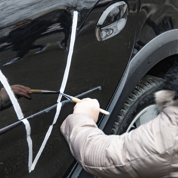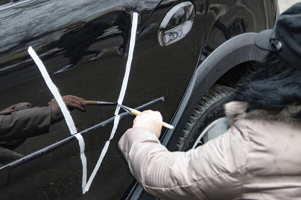 На видеозаписи демонстрируется, что на установленном на бронепоезд бронетранспортере белой краской нанесены вышеуказанные знаки. До этого военная техника с подобными символами в объективы еще не попадала.