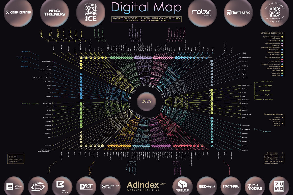 Напомним, Digital Map — ежегодное исследование рынка digital-услуг, которое охватывает 16 ключевых сегментов и включает лучшие компании из топ-10 интегрального рейтинга AdIndex.