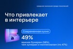 По функциональности запросы схожи: 49% респондентов ценят современную кухню, 43% — большие окна и естественный свет, 37% — продуманную систему хранения и современный санузел.