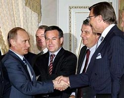 Кстати, буквально через неделю после ареста Ходорковского — в начале декабря 2003 года — Путин тоже проводил встречу с крупными иностранными инвесторами. Правда, тогда в Кремле, а не в Константиновском дворце Санкт-Петербурга. Но смысл обеих встреч, в принципе, одинаков — показать, что в России крупными иностранными инвесторами занимается лично глава государства. И что если лично глава государства, который «за всем следит» — от судебной системы до средств массовой информации и переводчиков его речей, — дает «добро», то именно это и является настоящей гарантией.