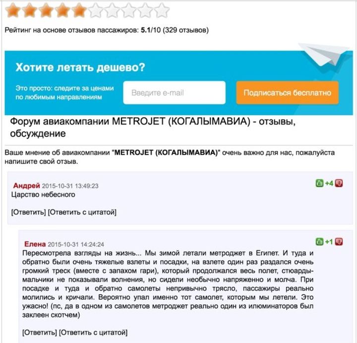 Относительно разбившегося самолета в сети гуляет информация, согласно которой пилоты в последние дни не раз (!) обращались с жалобой на работу двигателя. В аэропорту Шарм-эль-Шейха самолет не проходил технический осмотр местными службами, авиакомпания, говорят, летает со своими техниками.
