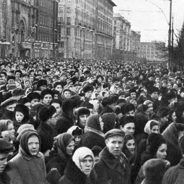 Людям разрешили говорить, чтобы они могли излить свое горе. И люди говорят, навзрыд. Также людям разрешили увидеть тело любимого вождя во гробе, никто не ограничивал допуск на подступах к Москве. При этом 6 марта 1953 года двери Колонного зала закрыты для обычных посетителей, пропускают только официальные делегации. А маршрут следования по центральным улицам плотно оцеплен, военными грузовиками перекрыты переулки, толпе не дают растечься в стороны.