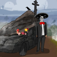 Где взять столько легкомыслия, чтоб отнестись к Дню мертвых как к приколу? Культ мертвых, пляски с черепами, скелеты в цивильных нарядах... знаменитая Калавера Катрина (скелет в модной шляпке), которая на популярной картине идет под руку с Фридой Кало и Диего Риверой. Праздник уходит корнями в традицию, которая до сих пор осталась где-нибудь в Индонезии и на Филиппинах, там, где больше всего обрядов с мертвыми, где трупы регулярно выкапывают, наряжают и торжественно сажают за общий стол. Как это они так… «на ты» со смертью?