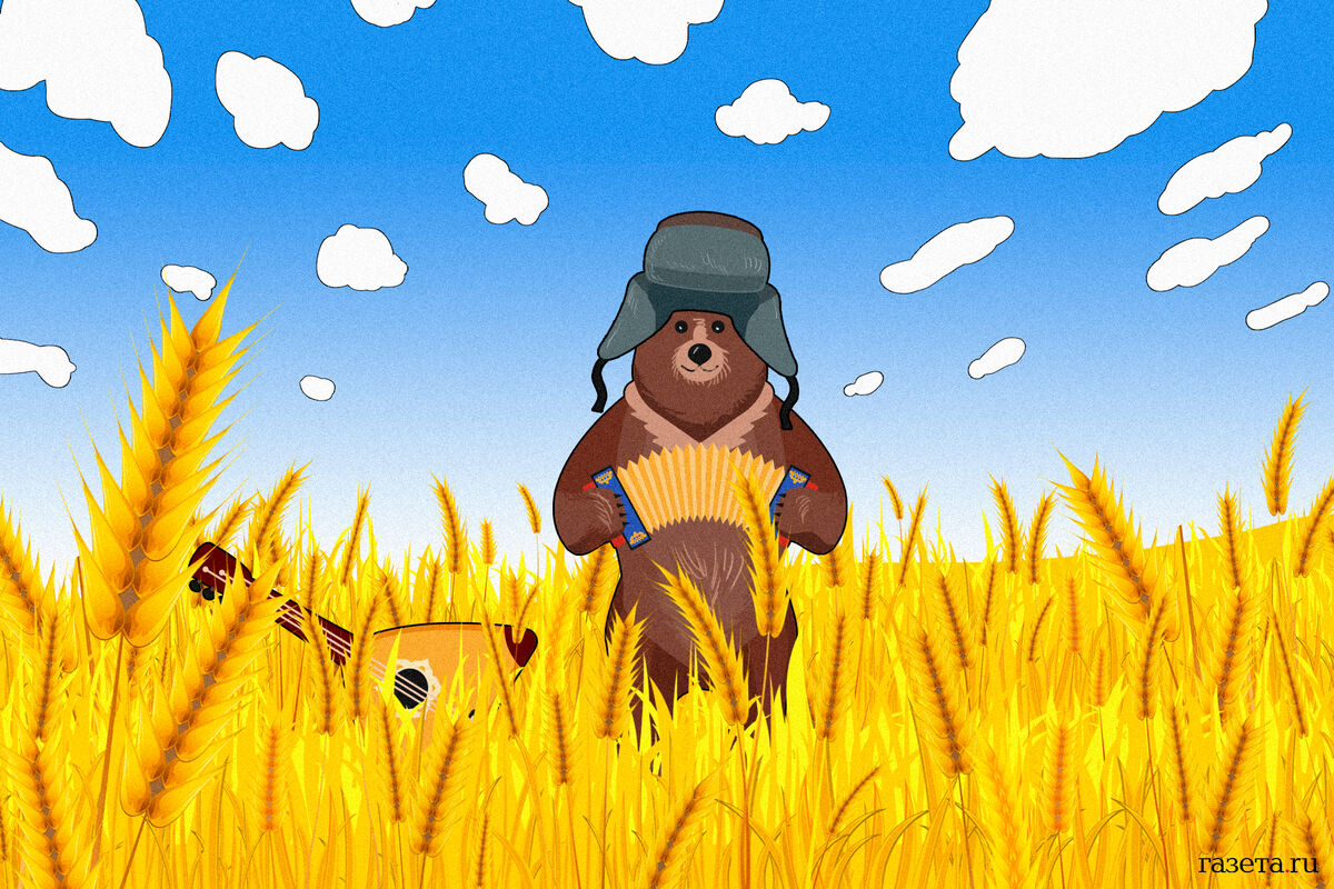 Там дела обстоят так: поле. Колосится рожь по пояс. Посреди всего этого великолепия появляется певец Шаман и взвизгивает, словно его прямо сейчас режут тупым ножом — «Я русский». За те 15 секунд, что я припадала к живительному источнику, в кадре материализовалось, кажется, все из клипа «Россия для иностранца» – закат, колосья, ветер, расстегнутая рубаха. Мне, правда, остро не хватило медведя, балалайки и Джигурды.