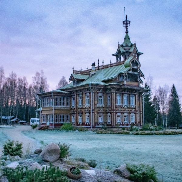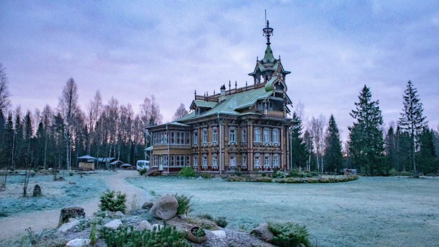 Представьте себе, что едете вы по автостраде, частично уже отремонтированной, иной раз и заново построенной, а иной – только слегка подправленной, по сторонам – русские равнинные просторы, заросшие дикой травой и кустарником, темные леса, редкие деревни, речки со странными названиями. Таков обычный пейзаж Костромской области, одной из самых безлюдных в нашей стране, и чем дальше на север, тем безлюдней. Вся небогатая цивилизация сосредоточена вдоль автострады – бензоколонки, редкие кафе, шиномонтажи. Но стоит съехать с трассы – и уже не встретить никаких следов человеческой деятельности, кроме штабелей с бревнами, подготовленным лесорубами для вывоза, и остатков брошенных деревень с превращенными в развалины храмами. И вот после 30 километров проселочной дороги, заботливо засыпанной крупным гравием, от которого душу вытрясешь, вы вдруг попадаете на сказочную поляну – открытое, дочиста выкошенное пространство с прудами, альпийскими горками, садом-огородом, баней, клумбами и тропками. А посреди поляны – терем с картин Васнецова или Головина – резной, нарядный, разноцветный. В нем вы можете пожить пару дней, если заранее забронировали себе номер, и эта территория с ее лавочками, беседками, расчищенными тропами к озеру, птицами и цветами станет на время вашей.