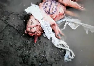 Подсказку пользователи интернета углядели в круглом штампе, занимающем почти весь бок «поросенка». В центре написано «18.12 AGM Heartland Pat Pend USA», а по кругу - «US Inspected And Approved» («Проверено и одобрено США»). Во-первых, 18.12 – это как раз номер выпуска вышеупомянутого журнала, а во-вторых, торговая марка «AGM Heartland» принадлежит расположенной в Беверли-Хиллз фирме, предоставляющей услуги по поставке развлекательного контента о «вымышленной компании, которая производит генетически спроектированные и измененные организмы».
