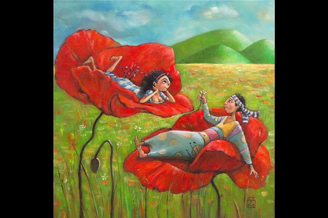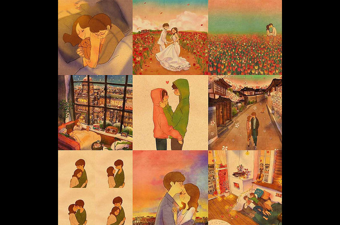 Работы корейской художницы рассказывают о жизни одной пары. Юноша и девушка гуляют, катаются на коньках, ужинают у камина, смеются, согревают друг друга, смотрят на город, читают, говорят — живут обычной жизнью, в которой есть слово «вместе» и настоящее чувство.