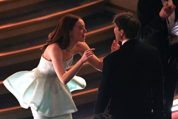 Амбассадоры «Барбенгеймера» Эмили Блант и Райан Гослинг на сцене. Обещанный сегмент, прославляющий работу каскадеров и постановщиков трюков, у которых по-прежнему нет не только своей категории на «Оскаре», но и полноценной гильдии (как, например, у актеров и сценаристов). Показали красивую нарезочку и сказали, мол, молодцы.