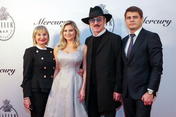 Актеры Лариса Луппиан и Михаил Боярский, их внучка Катерина Боярская и ее отец депутат Госдумы РФ Сергей Боярский (слева направо) на балу дебютанток журнала Tatler в Доме Пашкова, 2019 год
