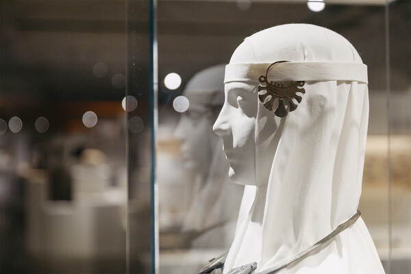 Еще один экспонат периода первых славян, височные кольца, — одно из самых характерных женских украшений того времени. На выставке их можно увидеть на специально созданном белом бюсте. У потомков летописных северян и радимичей преобладали кольца деснинского типа — в форме полумесяца, с пятью или семью длинными лучами.