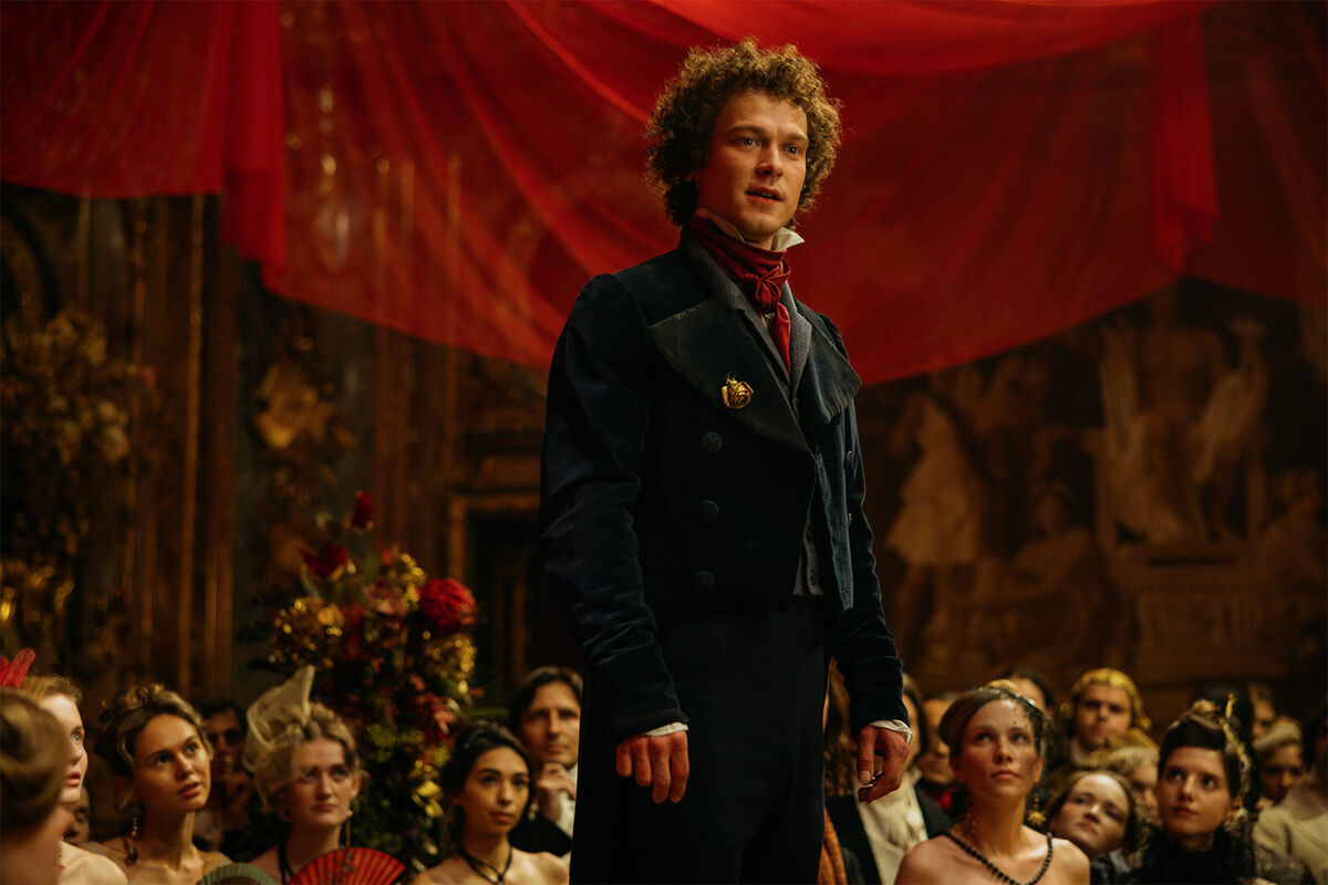 Следом все сыпется по принципу домино: кринжовый хип-хоп и не отстающие от него арии снабжены скучноватыми аранжировками, в которых быстро опознается супермаркетный почерк композитора Райана Оттера (в свое время он сочинил музыку для киносериала «Гоголь», еще одного жанрового проекта про одного из великих русских писателей, где в области финальных титров содержится смешное камео Михаила Юрьевича Лермонтова). В конечном счете страдает сердце мюзикла — музыкально-танцевальные номера, среди которых попадаются вещи яркие (вроде охранительского гимна Александра Бенкендорфа в исполнении Сергея Гилева), но все-таки не способные исправить скверное впечатление от однообразности всего этого сегмента картины: герои топают ножками, хлопают ручками и в целом всячески обозначают ритм — и на этом, в общем, все.