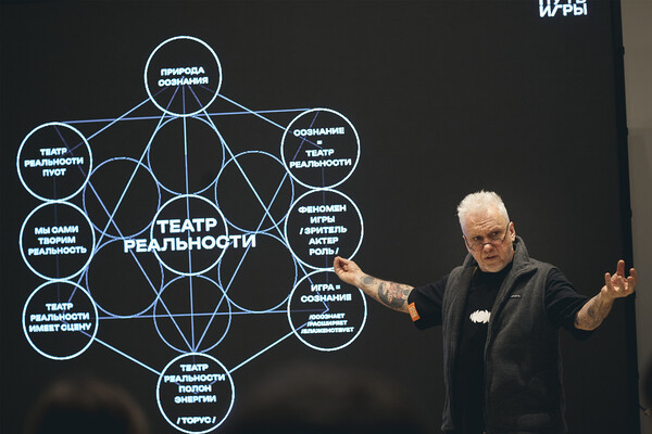 — Театр как раз-таки это и транслирует: погружение людей в состояние здесь и сейчас. — Наш театр — это манифестация живого мгновения. Когда зрители видят нас на сцене, они вдруг понимают: жить можно не в сожалениях о прошлом и не в фантазиях о будущем, а прямо сейчас. Все остальное — иллюзия. Театр — естественное следствие мистериальных традиций эволюции сознания, естественного процесса эволюции сознания. Нет ни одного региона, ни одного континента, где не возникло бы культуры, в которой сознание не созрело бы до манифестации себя через театральную модель.