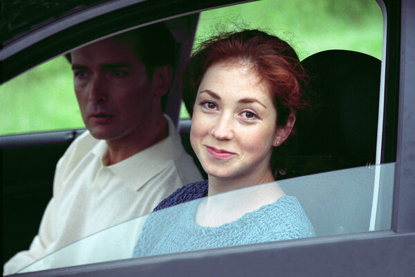 Актеры Анна Большова и Андрей Руденский на съемках сериала «Остановка по требованию» (2000)
